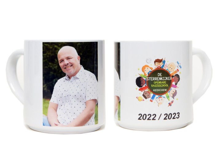 Uw persoonlijke boodschap, bedrijfslogo of een foto op een mok.
